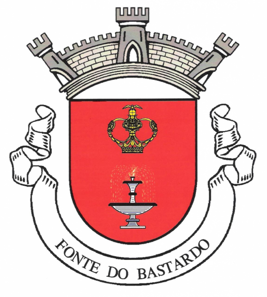 Brasão: Escudo de vermelho, fonte heráldica de prata e azul, em chefe, coroa do Espírito Santo, de ouro. Coroa mural de prata de três coroas de três torres. Listel branco, com legenda a negro «Fonte do Bastardo».